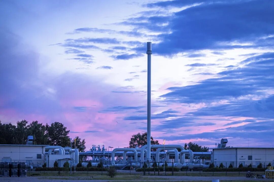 2022年7月11日,德国北部城市卢布明“北溪-1”输气管道设施。