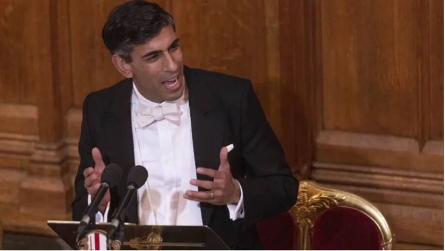 苏纳克在伦敦市长宴会上发表讲话。图源:彭博社