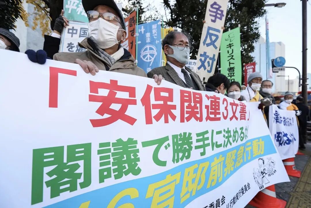 日本内阁会议敲定三份安保文件,日本民众在首相官邸前抗议。图源:GJ