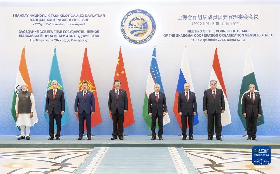 9月16日,上海合作组织成员国领导人集体合影。图源:新华社