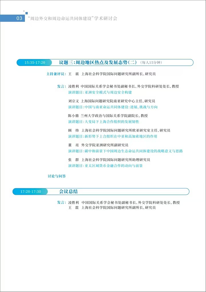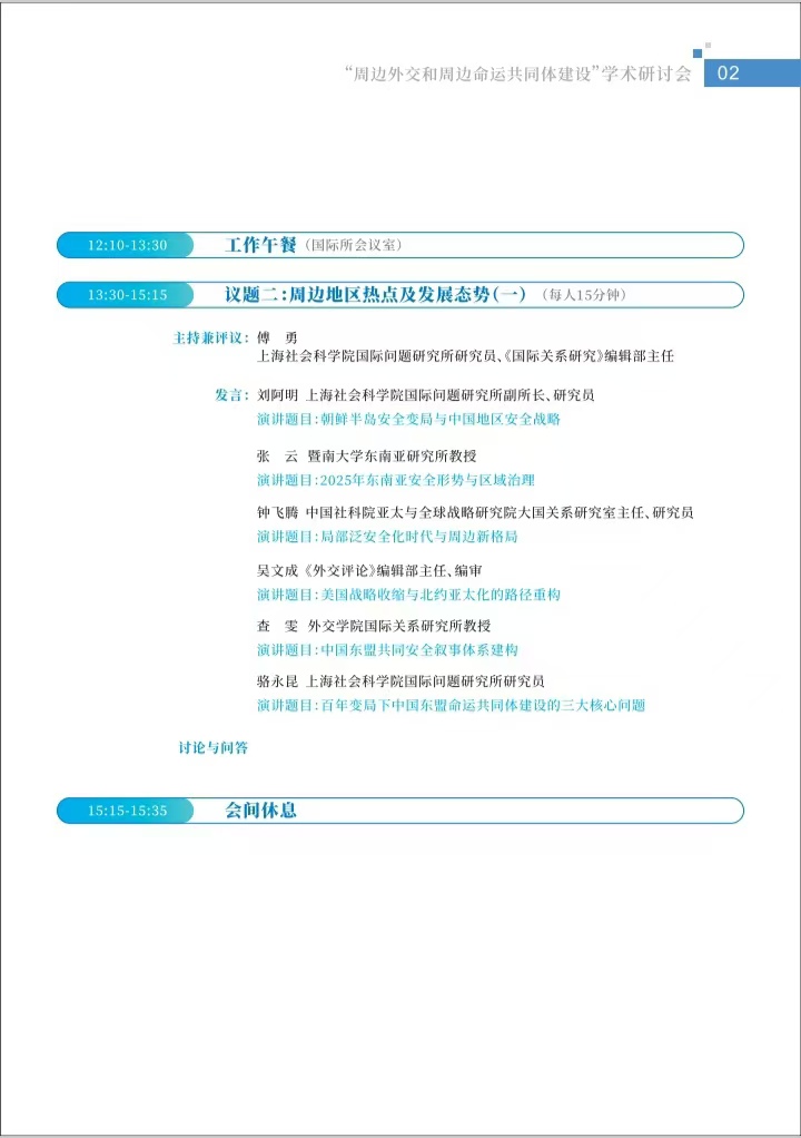 “周边外交和周边命运共同体建设”学术研讨会议程