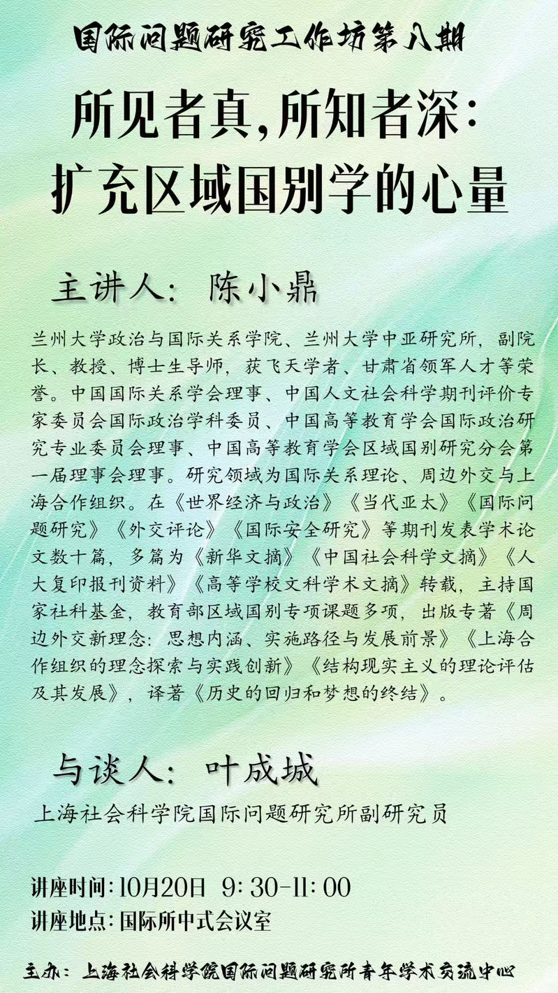 10月20日上午,上海社会科学院国际问题研究所青年学术交流中心举办第八期青年学术工作坊,本期主题聚焦区域国别学研究。