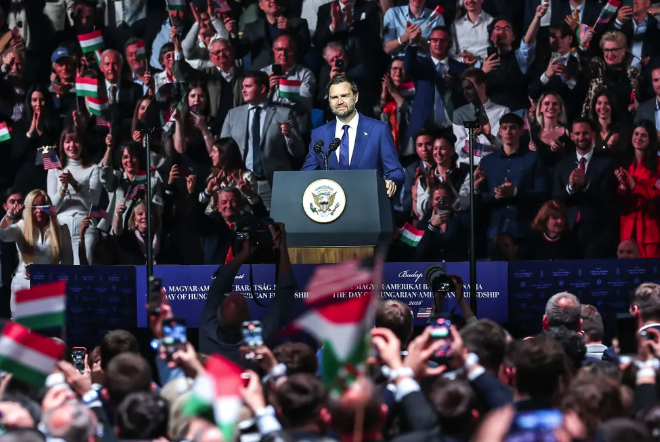 美副总统万斯在匈牙利抨击欧盟政策。图源:新华社